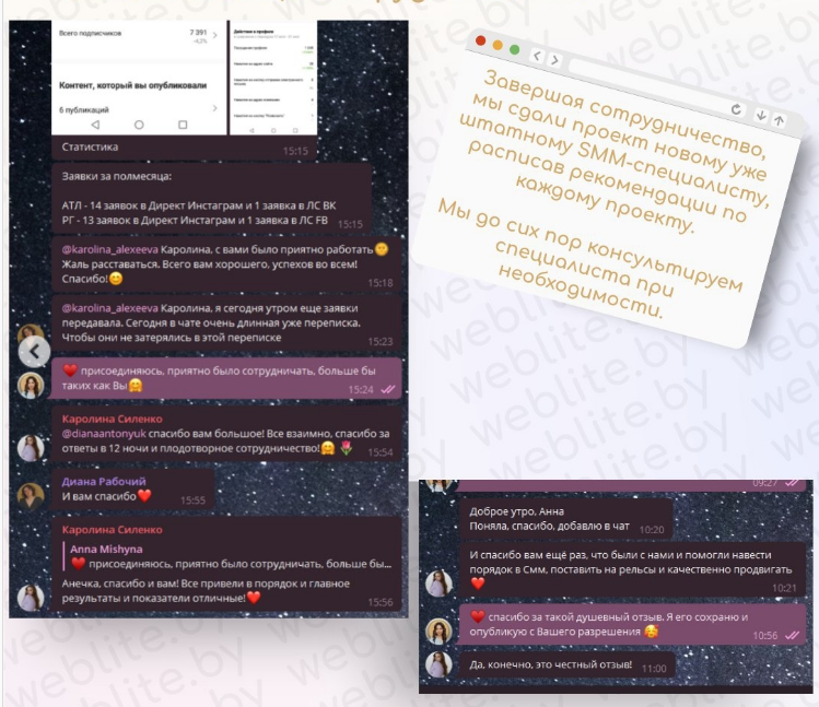 1) Ведение всех социальных сетей: Instagram, FaceboK, ВКонтакте, Одноклассники.